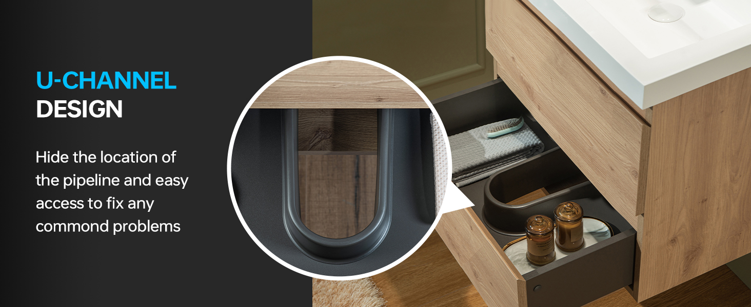 ✅ [U-SHAPED DRAINAGE PIPELINE ACCESS]: Patented design U drawer with ultra-thin U-shape ABS material drainage pipeline access, separating toiletries from the plumbing for tidy look offering more storage space while keeping a nice look.