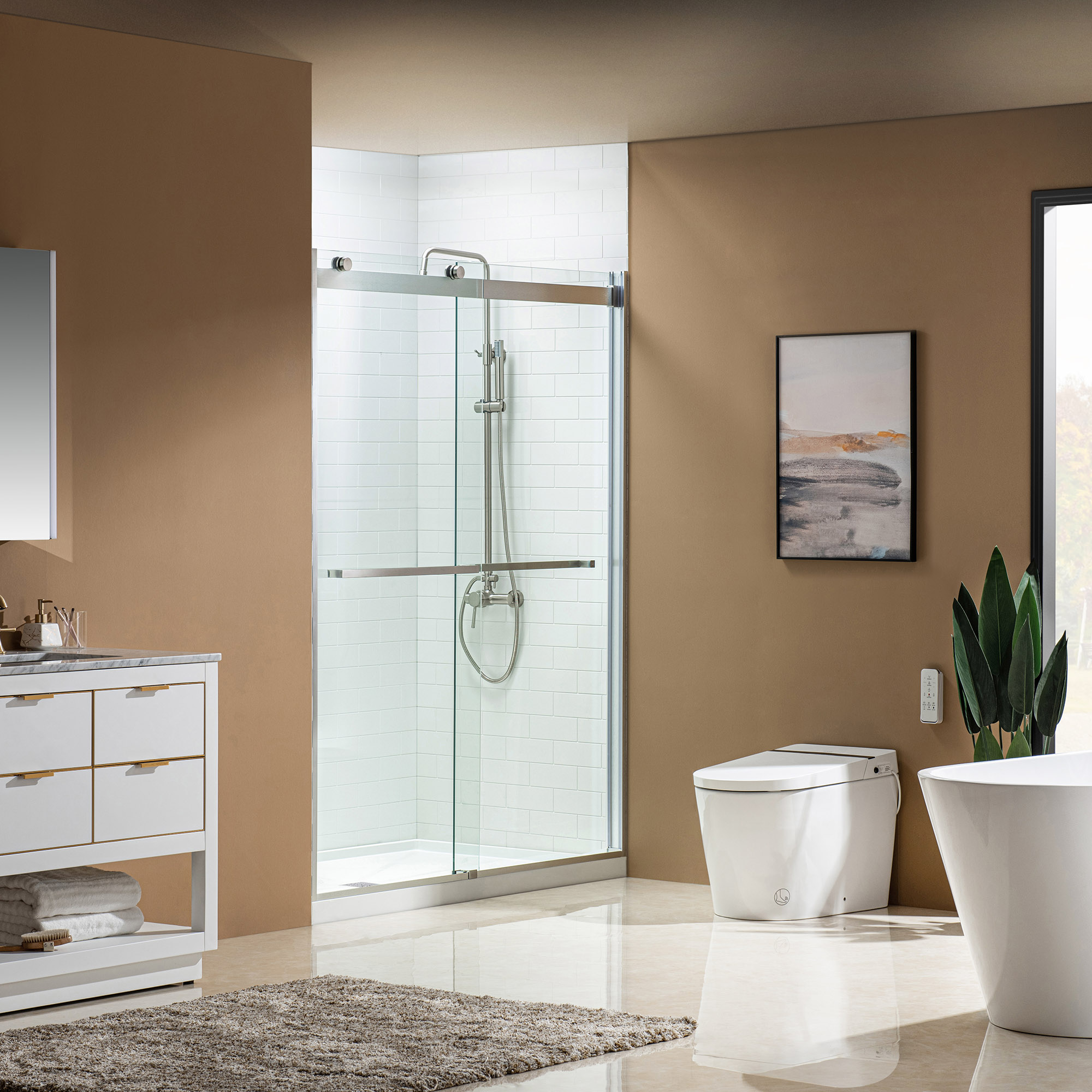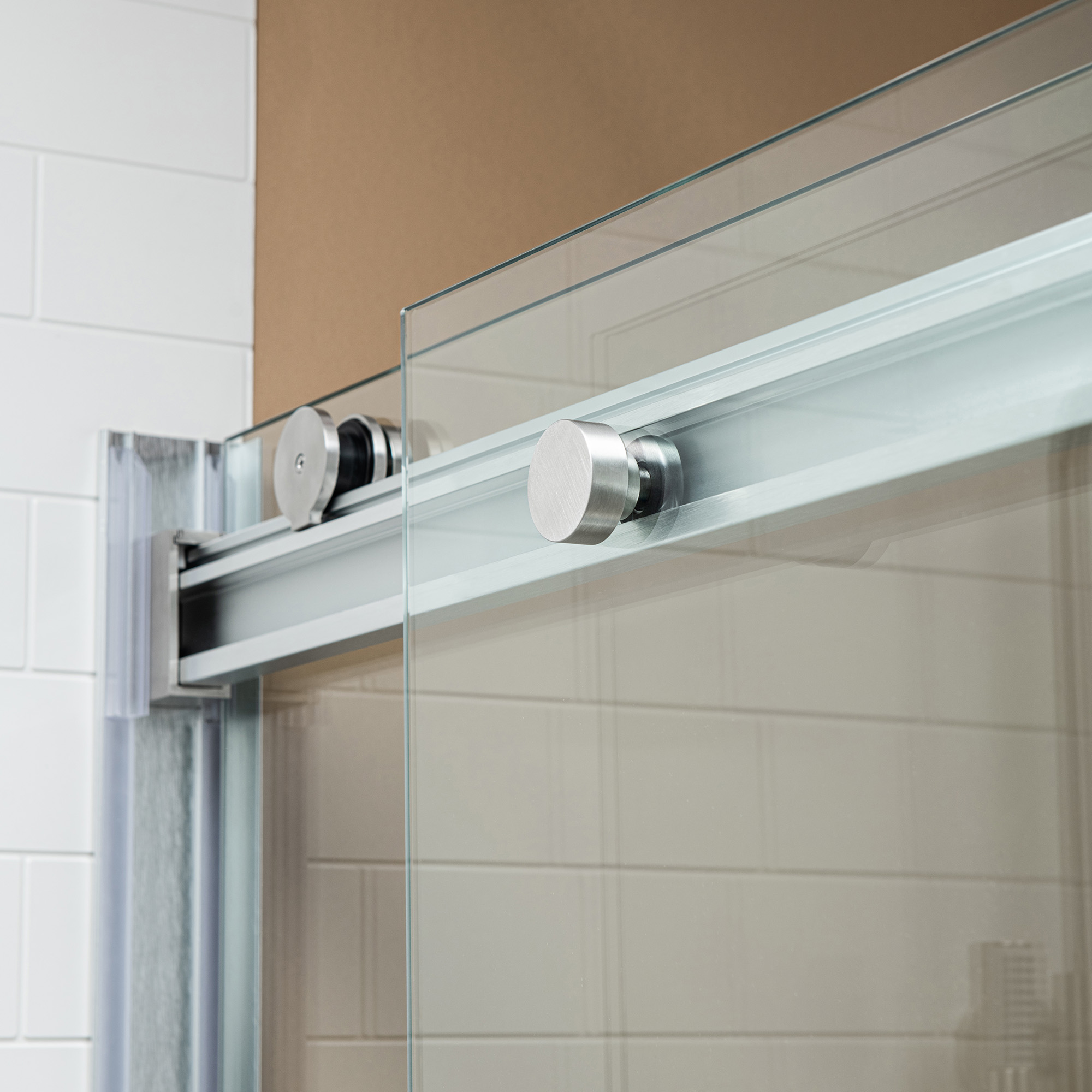 ✅ [HIGH QUALITY MATERIAL]: 5/16"(8mm) thick tempered safety glass with ANSI Z97.1 certified, for easy cleaning and to resist water spots; Large solid stainless steel rollers creating a quiet, smooth and effortless sliding