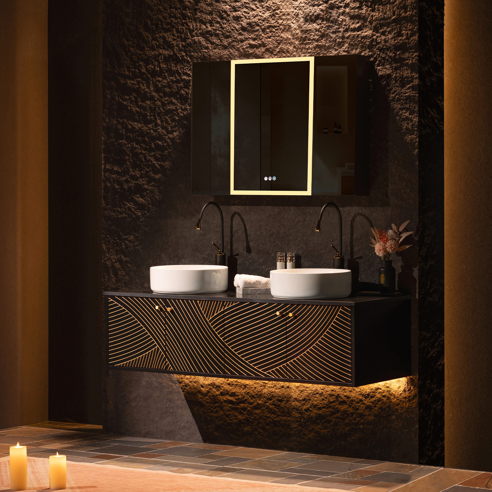 ✅ [Ingenious Craftsmanship & Artistic Design]: Matte black finish with hand-painted gold accents and unique door lines blend luxury and durability. Easy to clean and timeless, this vanity turns your bathroom into a stunning focal point of art and elegance.