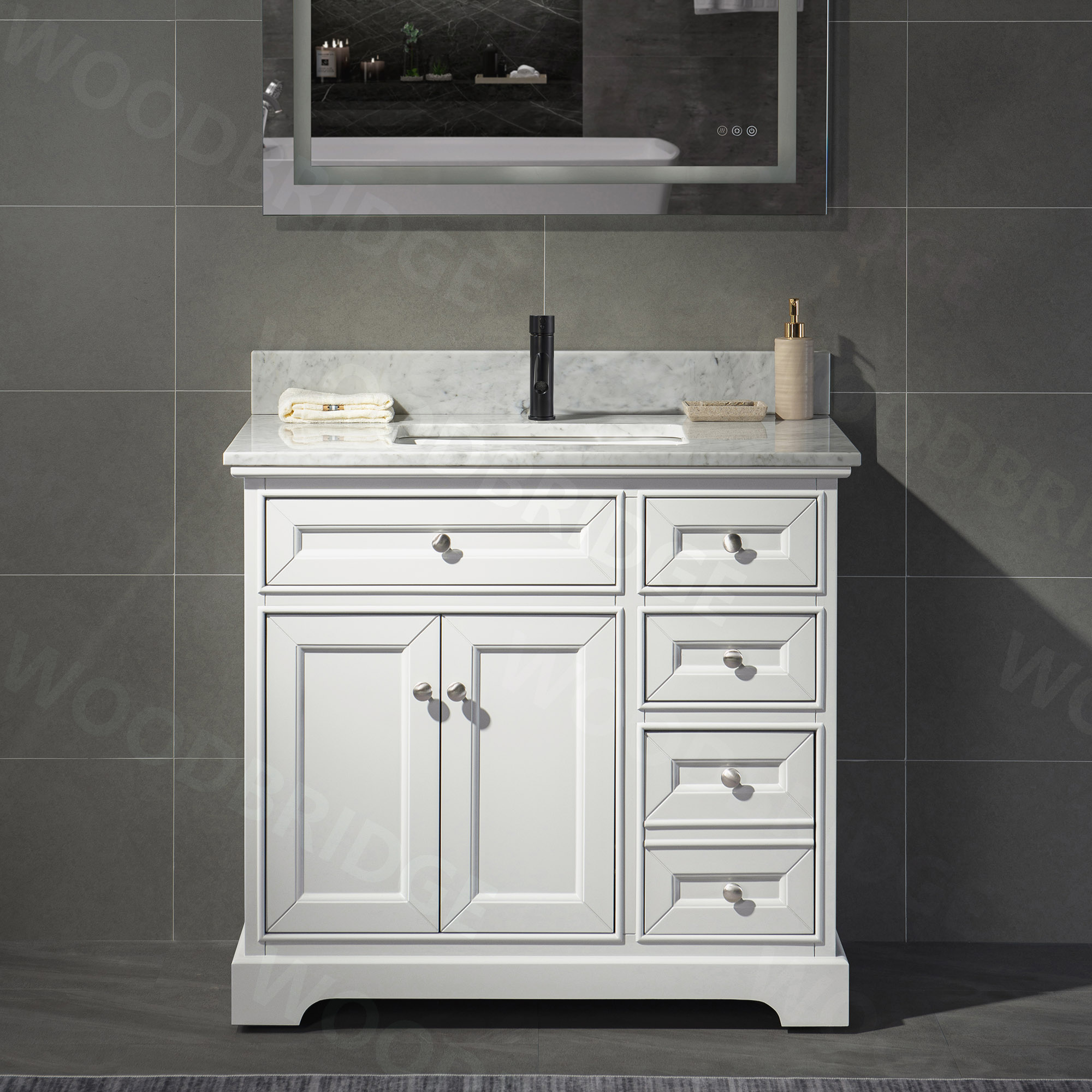 WOODBRIDGE London 36" Bathroom Vanity with authentic Italian Carrara Marble top Single faucet holes |Rectangle Undermount Sink